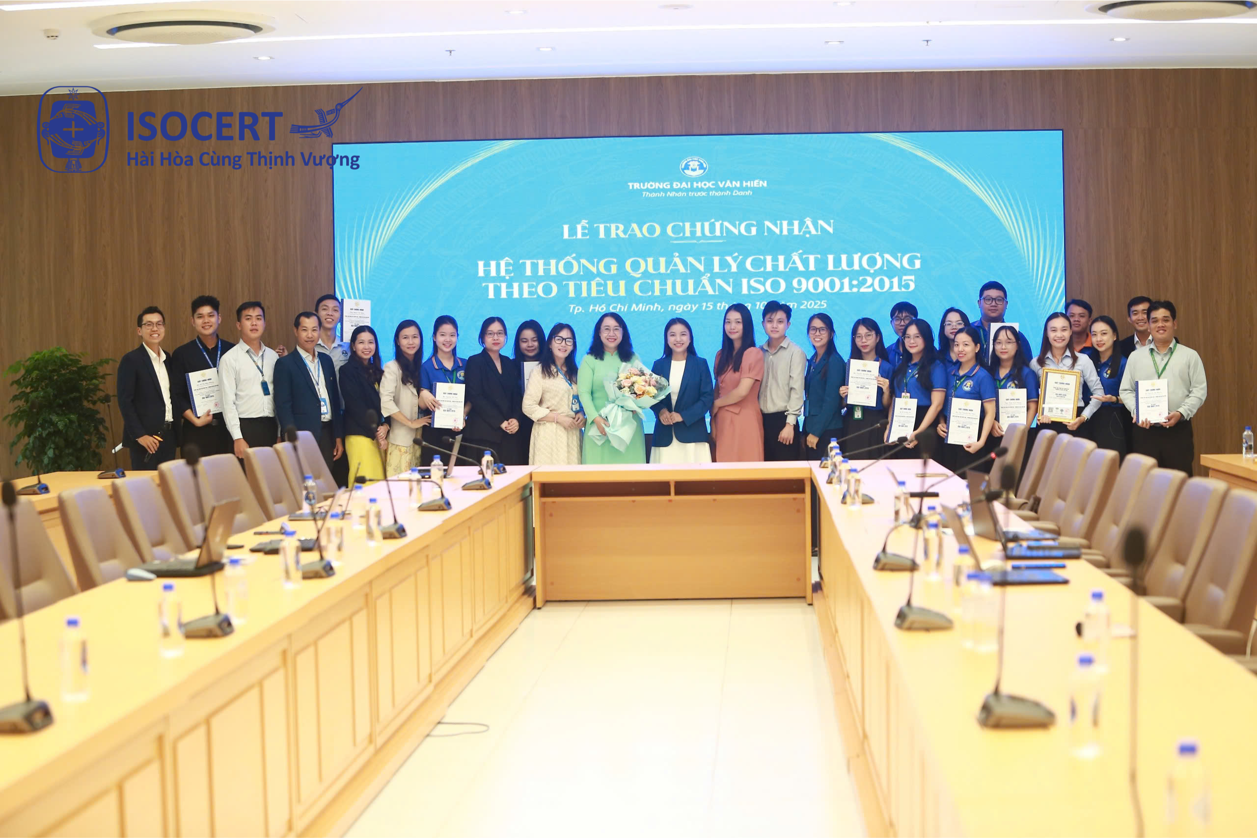 Ngày 15/10/2025, ISOCERT chính thức trao chứng nhận ISO 9001:2015 cho Trung tâm Chăm sóc Người học – Trường Đại học Văn Hiến, đánh dấu bước tiến quan trọng trong hành trình nâng cao chất lượng quản lý và dịch vụ người học.