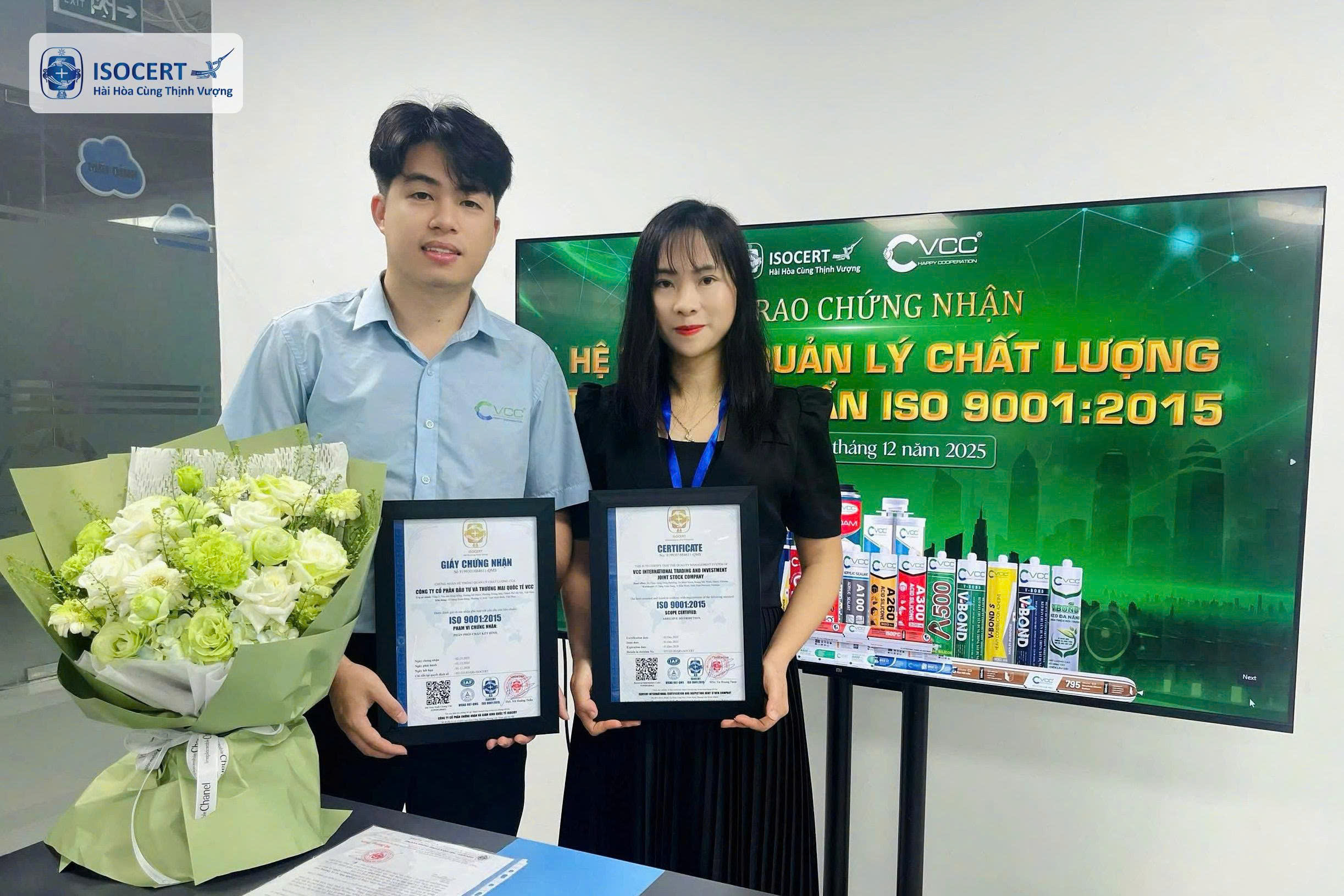 Vừa qua, Công ty Cổ phần Đầu tư và Thương mại Quốc tế VCC đã chính thức được ISOCERT cấp Chứng nhận ISO 9001:2015 – Hệ thống quản lý chất lượng. Đây là dấu mốc quan trọng trong quá trình doanh nghiệp chuẩn hóa hệ thống quản lý, hoàn thiện hồ sơ năng lực và nâng cao mức độ sẵn sàng trong hợp tác với khách hàng, đối tác. Đồng thời thể hiện rõ định hướng phát triển dựa trên năng lực quản trị bài bản và tính minh bạch trong vận hành.