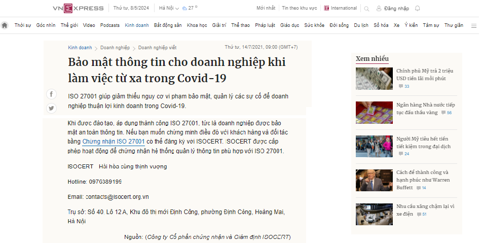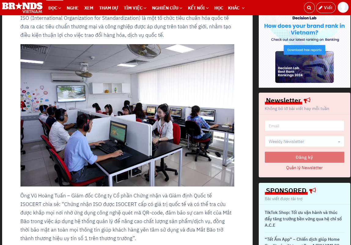 Chúng tôi luôn hướng đến việc cung cấp các dịch vụ theo tiêu chuẩn quốc tế hàng đầu. Tại ISOCERT, chúng tôi không chỉ đơn thuần là một tổ chức chứng nhận, mà còn là đối tác đáng tin cậy của bạn trong việc đảm bảo chất lượng, tuân thủ các tiêu chuẩn quốc tế và thúc đẩy sự phát triển bền vững của bạn. ISOCERT cam kết đồng hành cùng bạn trong hành trình phát triển và nâng cao giá trị của bạn. Chúng tôi xem khách hàng là nguồn cảm hứng và là động lực để không ngừng hoàn thiện dịch vụ của mình. Hãy tin tưởng và hợp tác với ISOCERT để cùng xây dựng một tương lai thành công và bền vững.
